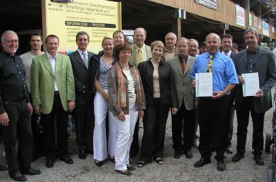 Einweihungsfeier des Bürgerkraftwerks auf der Reithalle in Weisweil u.a. mit Regierungspräsident Dr. Sven v. Ungern-Sternberg, MdB Peter Weiß, CDU, MdL Karl Nicola, SPD, Vertreter des Landrats Günter Stecher, Bürgermeister Oliver Grumber, Bürgermeisterstellvertreter und Kreisrat Dieter Ehret, Rudi Höhn und Klaus Bindner mit Urkunde